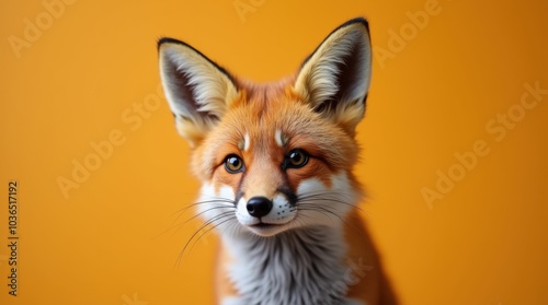 Fototapeta premium A red fox captured in a close-up portrait, its ears perked and head slightly...