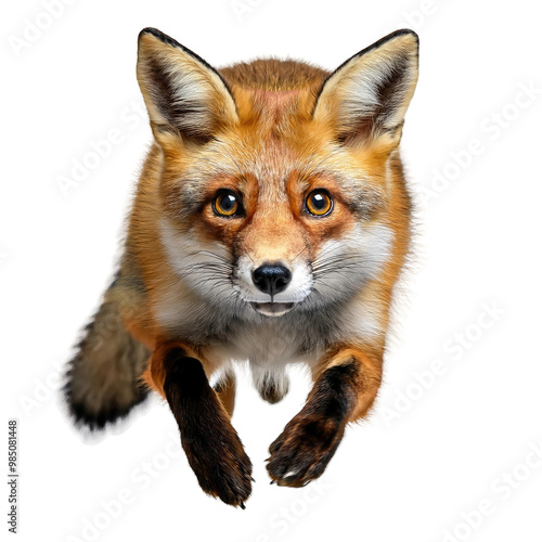 © Easy, Fototapeta premium A red fox leaps in the air.