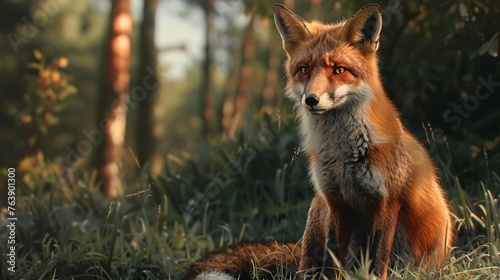 Naklejka premium a red fox sits amidst the greenery in this detailed closeup taken in a lush forest habitat