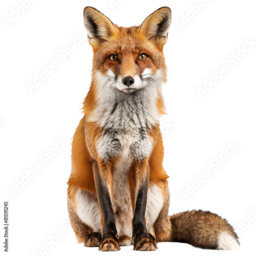© Iftikhar alam, Fototapeta premium A red fox sitting calmly in front of a plain Png background, a fox isolated on transparent background