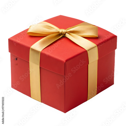 Obraz premium A red gift box with a golden ribbon isolated on transparent background