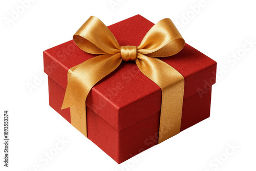 Obraz premium A red gift box with a shiny gold ribbon and bow, isolated on a white background.