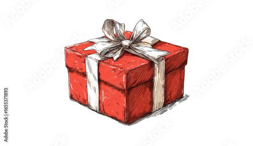 Obraz premium A red gift box with a white ribbon and bow