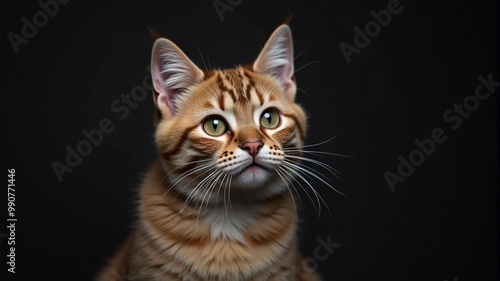 © Antonio, Obraz premium A red-haired mustachioed cat on a black background looks into the distance