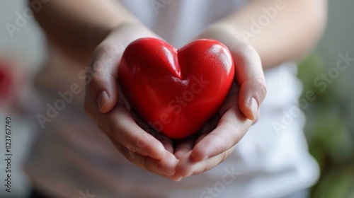 © nikola-master, Obraz premium A red heart in the hands of a close-up