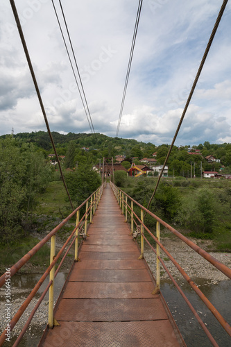 Obraz premium A Red Iron Bridge Crossing the Prahova River (Romania)