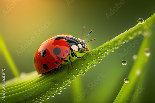 © vvalentine, Fototapeta premium a red ladybug sitting on top of a lush green, macro animal, generative ai illustration