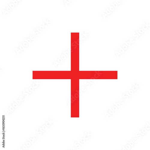 Obraz premium A red line art icon of a simple plus sign, often used as a minimalist crosshair or an indicator for addition.