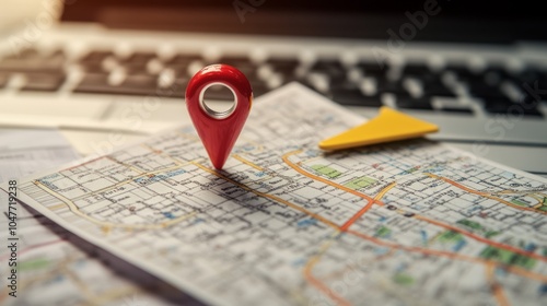 © Werckmeister, Fototapeta premium A red location pin on top of the map