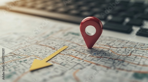 © Werckmeister, Fototapeta premium A red location pin on top of the map