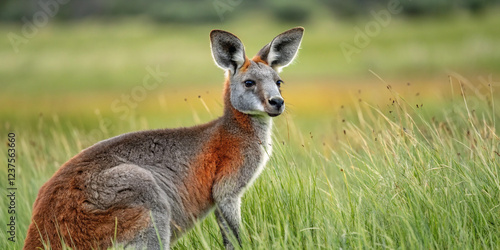 © P_edits, Fototapeta premium A Red-Necked Kangaroo in the Grass, Capturing the Essence of Australian Wildlife