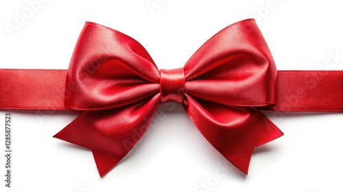 © Adisorn, Fototapeta premium A red ribbon bow, elegantly tied, against a clean white background.