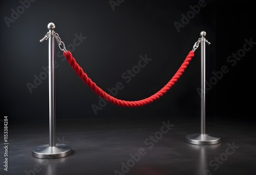 Fototapeta premium A red rope barrier with metal stanchions on a dark background