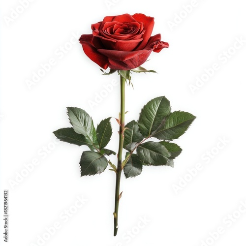 © Rawpixel.com, Naklejka premium A red rose flower background white stem.