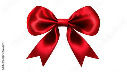 Fototapeta premium A red satin bow with smooth. glossy texture. elegantly tied in a classic style. perfect for gift wrapping or festive decorations. set against a clean white background