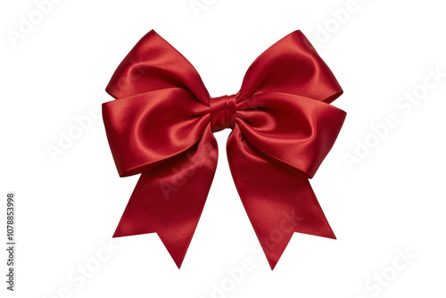 Fototapeta premium A red satin ribbon bow, isolated on a PNG transparent cut out background, perfect for celebrations, birthdays, and Christmas decorations.