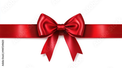 © Ксения Омельченко, Fototapeta premium A red satin ribbon tied in a bow on a white background.