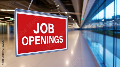 © Nice Seven, Obraz premium A red sign reading "Job Openings" hangs in a professional setting, signaling employment opportunities in an office or commercial space.