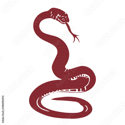 Fototapeta premium A red snake on a white background, for the 2025 holiday