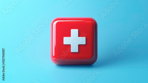 Fototapeta premium A red square with a white plus sign on a blue background.