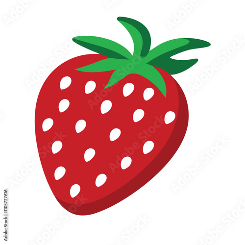 Obraz premium A red strawberry with green leaves and white dots. The strawberry is the main...
