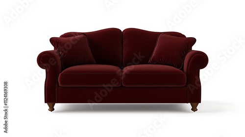 © Atthapon, Fototapeta premium A red velvet sofa with pillows on it
