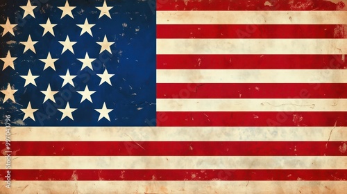 © Johannes, Naklejka premium A red, white and blue American flag with stars