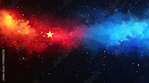 © Knight, Obraz premium A red, white, and blue banner with stars has space for text on the left side