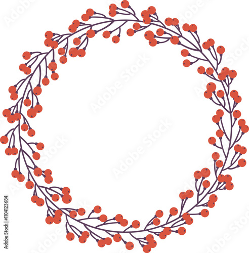 © LadadikArt, Fototapeta premium A red wreath with berries is shown in a white background