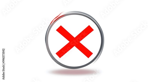 © Felippe Lopes, Fototapeta premium A red X symbol in a grey circle against a white background.