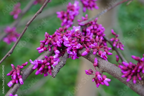 © eqroy, Fototapeta premium A redbud, or cercis, tree with pink flowers in spring