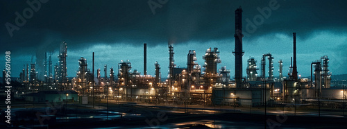 © Uolir, Obraz premium A Refinery at Night - generative ai