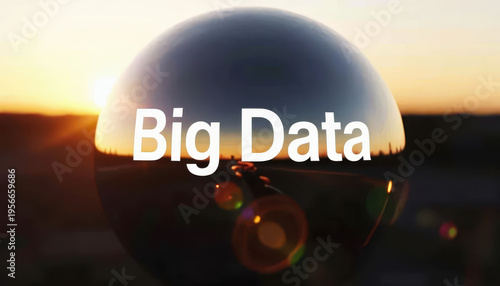 Obraz premium A reflective sphere captures a sunset, emphasizing the phrase 'Big Data'. The...