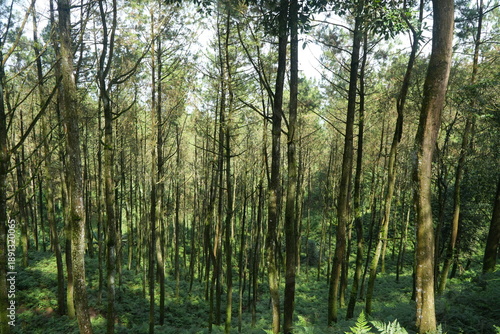 © Gumintang, Obraz premium A refreshing green view of a pine forest in a tropical area
