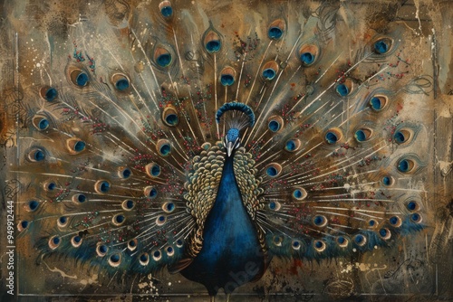 © Tanu, Obraz premium A regal peacock displaying its feathers, AI generated