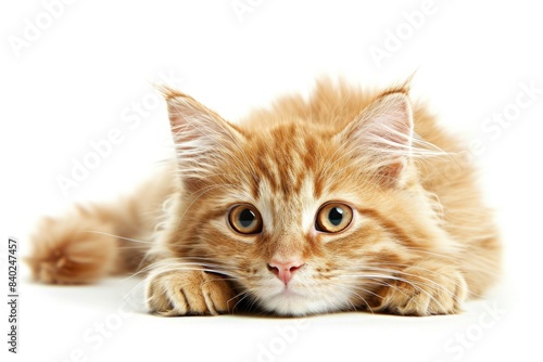 © vefimov, Obraz premium A relaxed orange cat lying down on a clean white surface