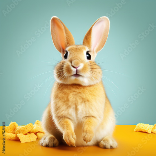 Obraz premium A relaxed rabbit making faces and eating