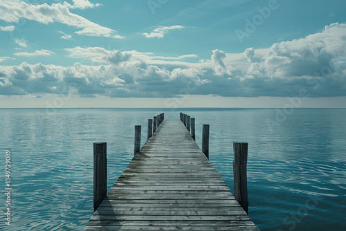 © Tetiana, Obraz premium A relaxing sea and wooden pier on the sea made generative AI