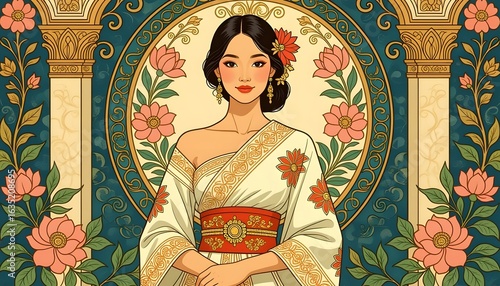 Naklejka premium A religious icon depicting the Virgin Mary with the baby Jesus is a sacred...