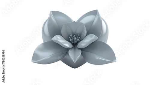 Naklejka premium A rendered, silvery flower with multiple rounded petals, centered on a stark...