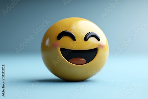 © Armaya, Fototapeta premium A rendered smiling yellow emoji expression on a light blue background