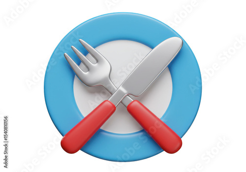 Fototapeta premium A rendering of a plate with a fork and knife crossed over it on a dark...