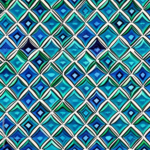 Fototapeta premium A repeating pattern of interlocking diamonds in shades of blue and green3, Generative AI