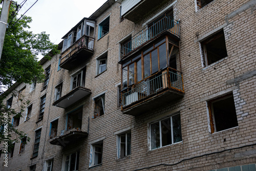 © Юрий Нортенко, Fototapeta premium A resettled abandoned apartment building in the city center.