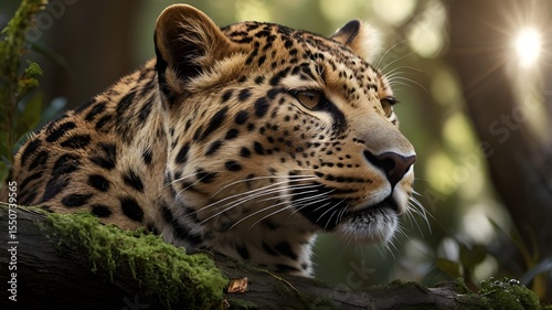 Fototapeta premium A Resting Predator Blends Seamlessly Into The Tranquil Forest Scene