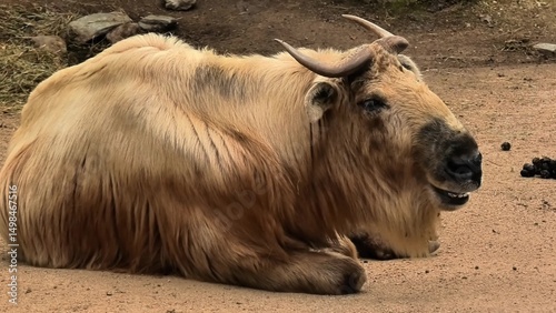 Fototapeta premium A Resting Yak in its Natural Habitat, Embracing the Beauty of Nature and...