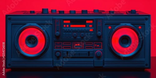 Fototapeta premium A retro-style boombox with vibrant red accents, featuring large speakers and...