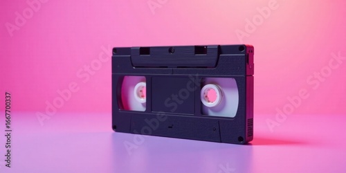 Obraz premium A Retro VHS Cassette Tape on a Vibrant Pink Surface, Evoking Nostalgia for...