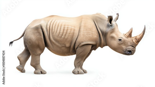 © Space Priest, Fototapeta premium A rhino with a large horn is walking on a white background