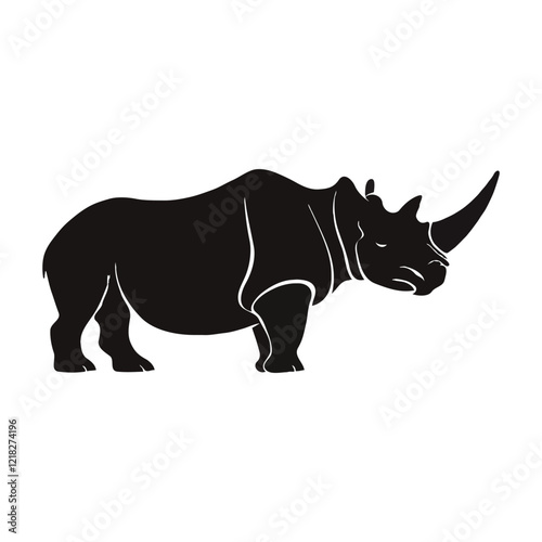 © Avijit, Obraz premium A Rhinoceros silhouette vector illustration, minimalist on white background